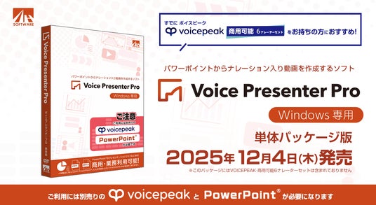 その中で「すでにVOICEPEAK 商用可能 6ナレーターセットは持っているのでVoice Presenter Proだけ単体で購入したい」というご意見を多くのお客様から頂戴し、ご期待に応えるべく今回の単体版発売に至りました。