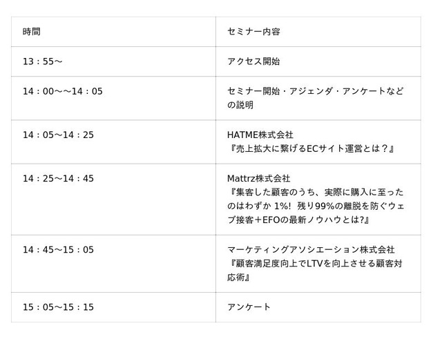 マーケティングアソシエーション株式会社の子会社であるHATME株式会社(本社:東京都台東区 代表取締役:中園広和、以下当社)は2025年12月18日(木)に、Mattrz株式会社、マーケティングアソシエーション株式会と、3社共催ウェブセミナー「2026年の売上を動かす!売上拡大×ウェブ接客×顧客対応でつくる成長型EC戦略」を、開催いたします。
