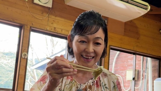 そこへ、名物店員さんが登場し、2人へ試食を勧めるが…個性が強い店員さんを前に2人は終始たじたじ…大分のお母さんパワーに圧倒される塚地。肝心のブドウのお味は…?
