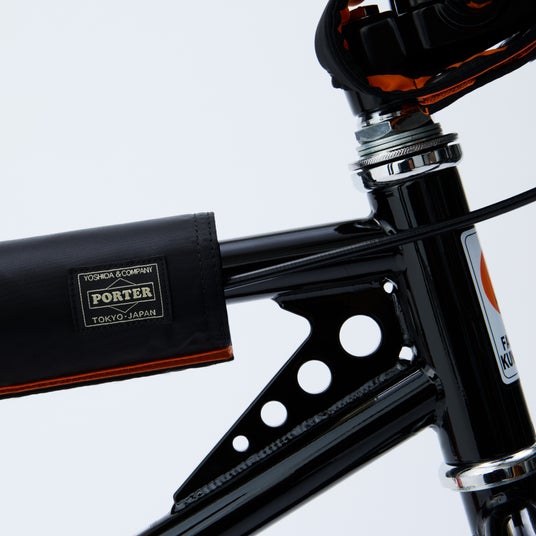 Orange & Blackのグラデーションが象徴的な本体フレームに、PORTERブランドを代表するシリーズ「TANKER」でも使用される、100%植物由来のナイロン生地を用いたフレームパッド、ハンドルバーカバー、ステムカバー3点が取り付けられるスペシャル仕様です。