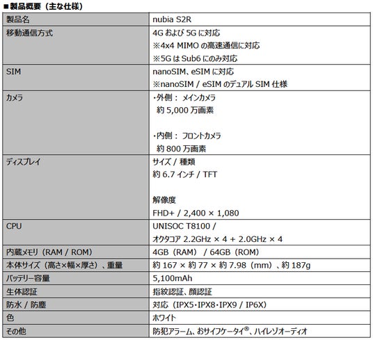 ■「nubia S2R」製品ページ