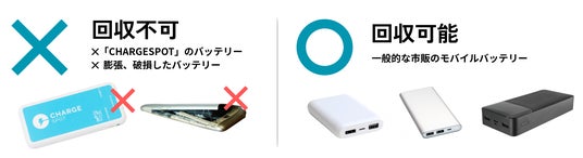 ※4:「CHARGESPOT」のバッテリーや膨張、破損のあるモバイルバッテリーは回収できません。