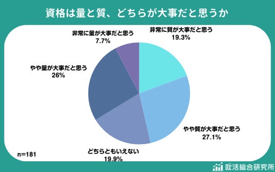 資格は「非常に質が大事だと思う」(19.3%)、「やや質が大事だと思う」(27.1%)と答えた就活生はあわせて46.4%でした。