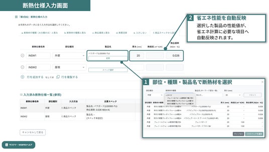 今般、当社が、当社の取り扱う国内主要断熱材メーカーの製品情報の提供を開始することで、設計者は、本サービス上で、「窓」製品に加えて、複数メーカーの「断熱材」製品の比較をしつつその外皮性能を容易に確認することが可能となります。