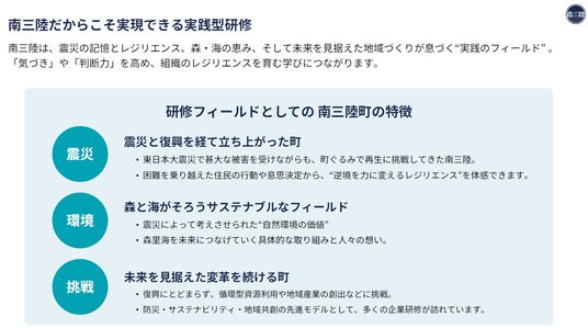2022年からは町の震災伝承施設「南三陸311メモリアル」の管理運営を担い、当町を訪れる団体、個人の方を対象に、「もしあなたがそこにいたらどう判断し、行動するだろう?」をテーマにしたラーニングプログラムを提供しています。