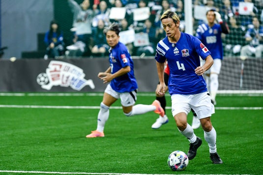 試合は5対5のミニゲーム形式で15分 x 4クォーターのトータル60分。日本チームは本田圭佑の強烈なミドルシュートや柿谷曜一朗のバイシクルシュートといった、世界を相手に戦ってきた選手たちの豪快な技で相手ゴールを脅かす。