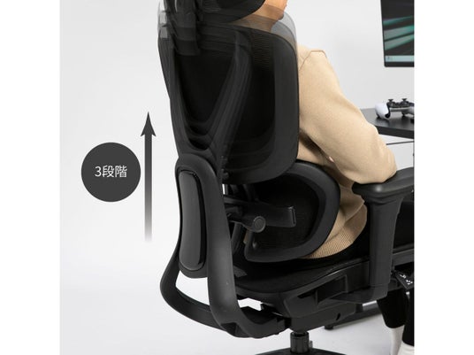 ■背もたれの高さ調整機能でフィット感をさらにアップ背もたれの高さを3段階で調整可能。身長や体型に合わせて調整することでフィット感が向上し、腰や背中周りをより的確にサポートできます。