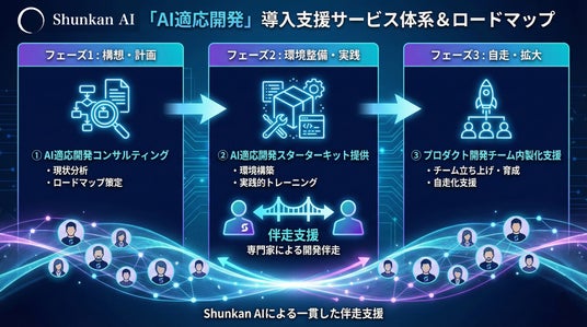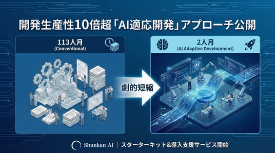 Shunkan AI株式会社(本社:東京都渋谷区、代表取締役CEO:松浦 潔、以下「Shunkan AI」)は、AI駆動開発を導入した企業が直面する「期待したほど成果が出ない」という課題に対応する新たなアプローチ「AI適応開発」を、note / Medium にて公開いたしました。あわせて、本アプローチを実践するための環境を一括で整備した「AI適応開発スターターキット」の提供を開始するとともに、導入を伴走支援する有償サービスの提供を開始いたします。