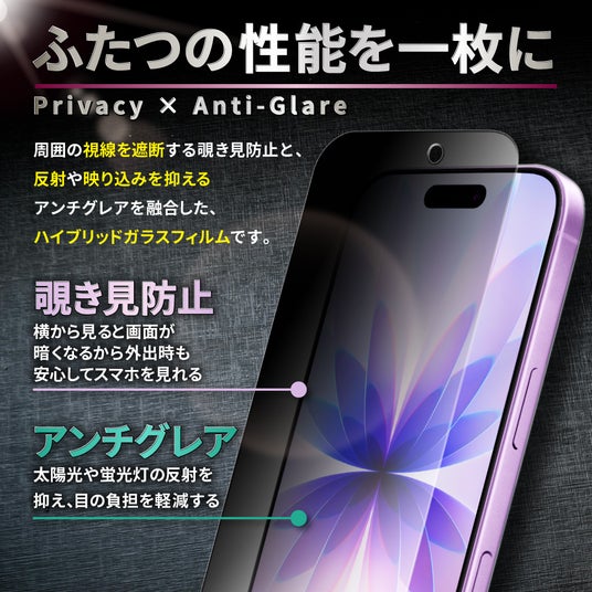 ● iPhone シリーズ 覗き見防止 アンチグレア ガラスフィルム