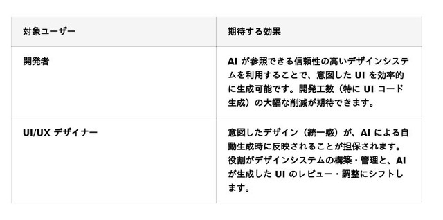 本サービスは、「全画面デザイン作成」を原則廃止し、AI が参照可能なデザインシステムを基盤とすることで、AI 駆動開発におけるデザイン統一性と UI コード生成のスピードを極限まで高めます。