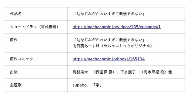今後も「めちゃコミックオリジナル」の世界を広げる取り組みとして、実写ショートドラマを続々と配信してまいります。新たな展開にぜひご期待ください。