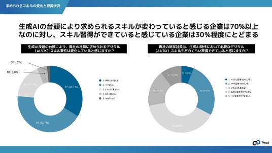 その結果、約7割の企業が生成AI時代に必要なスキル習得に課題を感じている一方で、対応できている企業は3割にとどまることが明らかになりました。