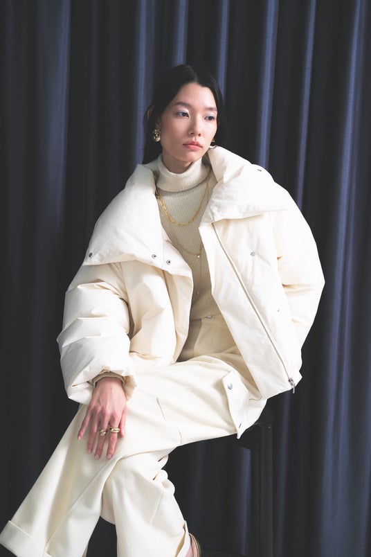12月5日(金)公開の「HOLIDAY COLLECTION」特集ページでは、オフショルダーとドレープデザインがポイントのニットワンピースを主役にしたスタイリングや、ふんわりとしたピンクのフェザーニットが華やぐスタイリングなど、ホリデーシーズンを彩る5スタイルをピックアップ。