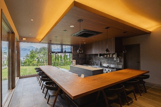 地元の旬の食材を知り尽くしたシェフが別荘へ出張し、その場のキッチンで調理を行う「プライベートダイニング」サービスを提供(オプション/要予約)。レストランへ移動する手間もなく、小さなお子様連れのファミリーやグループでも、周りを気にせず一流の料理をご堪能いただけます。