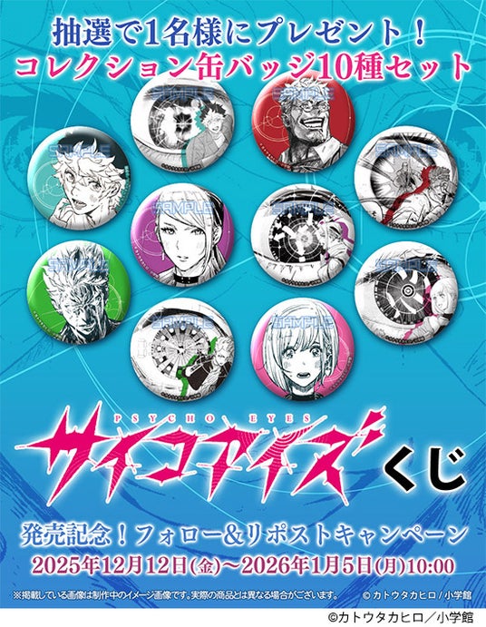 3. 抽選で1名さまに「サイコアイズくじ コレクション缶バッジ10種セット」をプレゼントします。