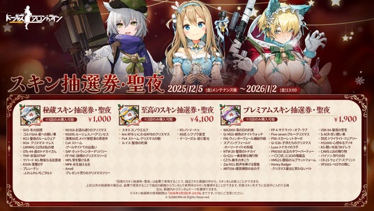 株式会社サンボーンジャパンは、スマホ向け戦略型シミュレーションゲーム『ドールズフロントライン(以下、「ドルフロ」)』において、限定のクリスマススキンがもらえるイベントを12月5日(金)より開催することをお知らせいたします。