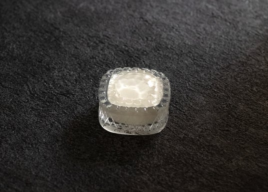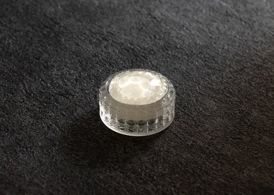 「光の工芸品」として話題沸騰中の《秘宝》は、透明な琥珀羹(クリスタルコンテナ)にバター練り物を封じ込めた新しい形のバターサンドです。その緻密なデザインは3DCADを用いて設計され、宝石のブリリアントカットを模した120個のメレダイヤのようなカッティングが光を反射します。