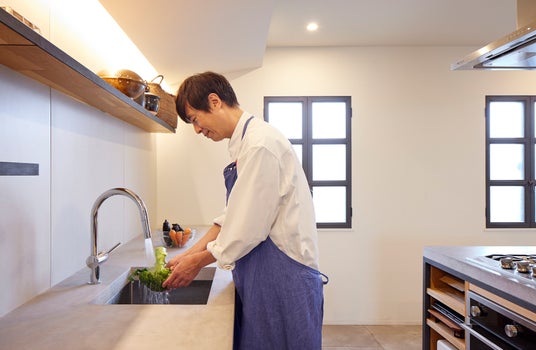 コウさんがGROHE製品に抱いた長年の想いと、ご自宅のコンセプトと見事に合致したキッチン水栓「ミンタ」 。機能性、スタイリッシュさ、そしてどこか愛らしい雰囲気という「絶妙なバランス」が、どのようにプロの空間に溶け込んでいるのか。