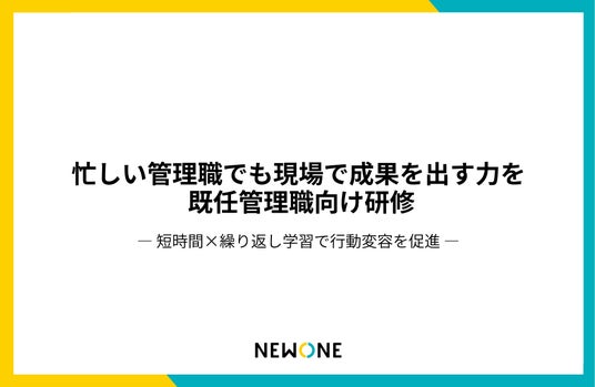 エンゲージメント向上を軸に“推せる職場づくり”を支援する株式会社NEWONE(本社:東京都港区、代表取締役:上林 周平、https://new-one.co.jp/ 以下、NEWONE)は、管理職が現場で直面するリアルな課題や悩みをベースに設計する新プログラム「既任管理職研修」をリリースしました。