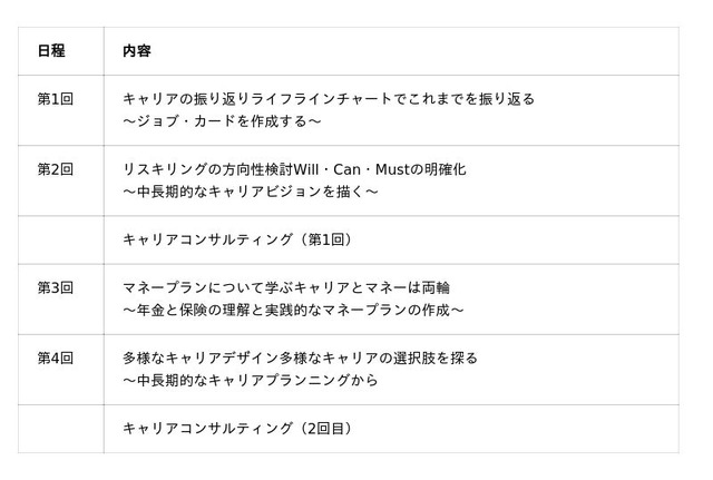 第2回と第3回の間と、第4回の後にキャリアコンサルティングを実施し、