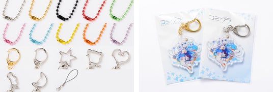自由な形状でカットできるため、工夫次第でおしゃれなキーホルダーを作成することができます。キャラ・アニメグッズなどの販売品・イベント販促品としてはもちろん、推し活グッズにもおすすめです。