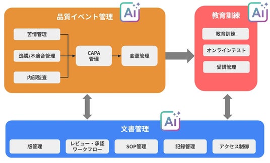 - AIによる支援機能 ・文書のAI規制チェック:QMS省令、ISO13485などの規制適合性を自動でチェック ・根本原因の自動分析:苦情等の品質情報や過去の類似事例データをもとに根本原因を深堀り ・オンラインテストの自動生成:文書からオンラインテスト問題を自動生成。教育資料の作成時間を大幅に短縮