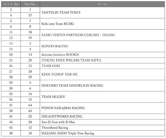 SUPER FORMULA 合同テスト・ルーキーテスト ピット割り
