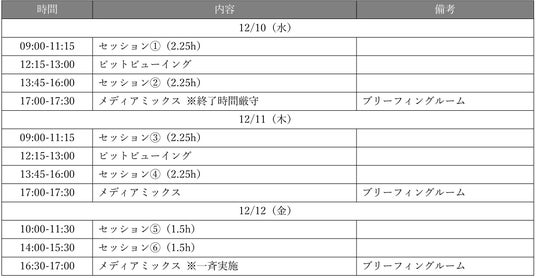 SUPER FORMULA 合同テスト・ルーキーテスト タイムスケジュール