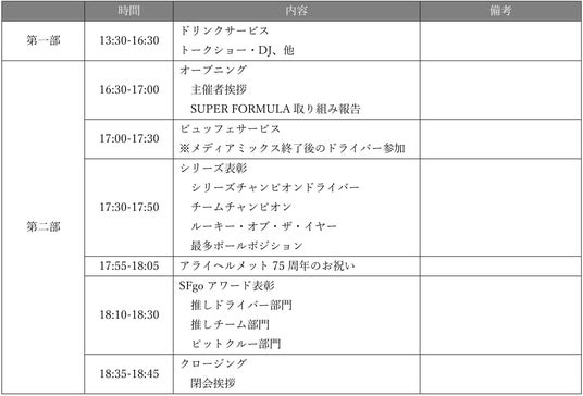 SUPER FORMULA AWARDS ‒ Partner Thanks Day タイムスケジュール