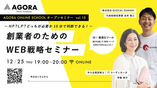 株式会社AGORAでは、2025年12月25日(木)に「創業初期のW E B戦略」をテーマにした創業WEBセミナーを開催します。