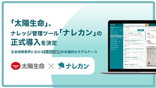 株式会社Stock (代表取締役社長:澤村大輔、本社:東京都中央区、以下「当社」)は、太陽生命保険株式会社(代表取締役社長:田村泰朗、本社:東京都中央区、以下「太陽生命」)が、当社が提供するナレッジ管理ツール『ナレカン』を正式導入することをお知らせいたします。