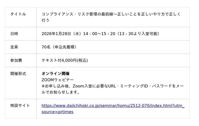 開催:第一法規株式会社(https://www.daiichihoki.co.jp)