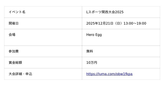 株式会社Meta Heroes(本社所在地:大阪府大阪市、代表取締役:松石和俊、以下「当社」)は、次世代のDX人材育成を目指し、学生向けのITスキルコンテスト「Lスポーツ関西大会2025」を2025年12月21日(日)に、当社が運営するDX教育施設「Hero Egg」内(eスタジアムなんば本店)にて開催いたします。