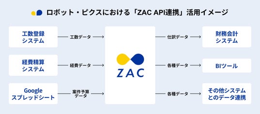 ZACは業務フロー、画面遷移、データ集計など、あらゆる処理がプロジェクトを軸に設計されているので、先ほどの申請・承認や収支把握といった作業をスムーズに進めることができます。つまり「プロジェクト管理がシステムのデザインに組み込まれている」とは、プロジェクト管理を行う際に必要な機能・フローが、自然な形でシステムに実装されている状態を指します。ZACはこの点で理想に近いシステムでした。■ZACのAPI連携を活用し、複数システムとの柔軟なデータ連携を実現