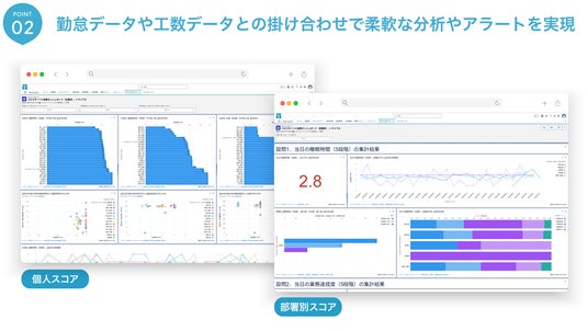 回答結果はSalesforce基盤上に集約され、TeamSpiritが持つ「勤怠データ(残業時間・休日出勤)」や「工数データ(業務負荷や日報内容)」などと組み合わせて分析することが可能です。