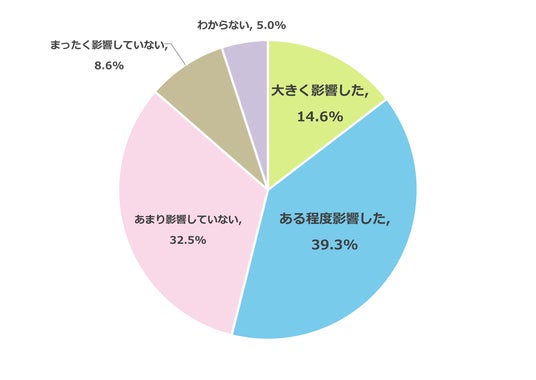昨今の物価高騰が子どもの受験勉強や受験サポート全般にどの程度影響したか調査したところ、53.9%が「影響した」(大きく影響した:14.6%、ある程度影響した:39.3%)と回答しました。