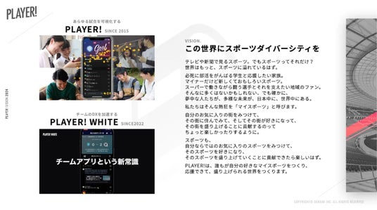 ▶︎事業内容:スポーツコミュニティアプリ「Player!」および「Player! WHITE」の開発・運営、スポーツ情報インフラの開発・運営