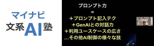 「マイナビ文系AI塾」は、マイナビ Executive AI Adviserの野口竜司氏を講師に迎え、生成AIをはじめとする最新のAI技術の基礎知識から実務での活用方法までを学べるオンライン研修コンテンツです。