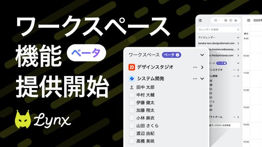 複数企業やフリーランスが混在するプロジェクトでは、スケジュール調整の手間や情報共有の難しさが常につきまといます。カレンダーアプリ「Lynx」は、そんな課題を解決する、異なるドメインのメンバー同士でも社内のカレンダー共有と同じ感覚で予定を調整できる「ワークスペース機能(β版)」を公開しました。プロジェクト型ワークを安全かつシームレスに進められる新しいソリューションとして、来春に予定する正式版公開に先がけ、β版として無料で提供を開始いたしました。