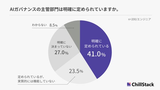 AIを用いた高精度な不正検知サービスやサイバーセキュリティサービスを開発・提供している株式会社ChillStack(本社:東京都渋谷区、代表取締役:伊東 道明、以下「ChillStack」)は、自社サービスの開発に携わるエンジニアを対象に「AIガバナンスに関する実態調査」を実施し、200名から回答を得ました。あわせて、一部の設問については情報システムや監査部署などガバナンスに関わる部署の担当者100名にも調査を行い、部門間での課題意識の違いを比較しました。