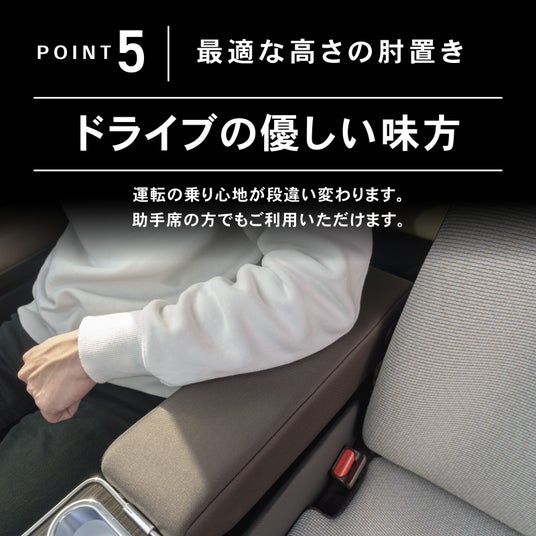 最適な高さの肘置きで、運転の乗り心地が段違い変わります。助手席の方でもご利用いただけます。