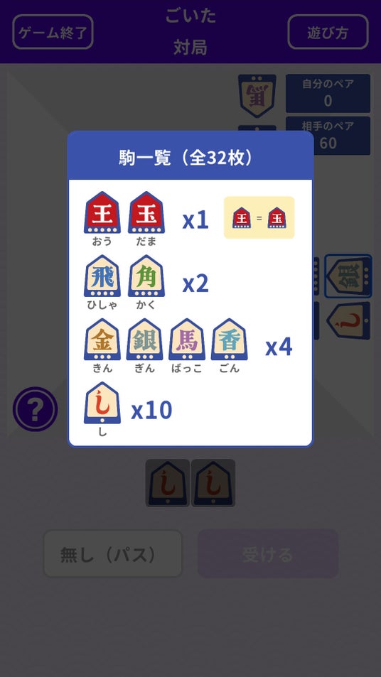 - 駒の残数表示:駒一覧と枚数を即確認でき、「あと何枚?」の把握に便利