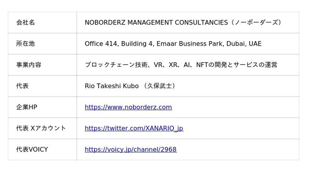 「国境のない世界を」というヴィジョンを掲げ、米国ニューヨークとドバイを中心とした世界5カ国に事業を展開する次世代型エンターテイメントテクノロジーカンパニー。ブロックチェーン技術に基づいたメタバース、NFTプラットフォームなどエンターテイメントとテクノロジーを融合させた事業を行う。