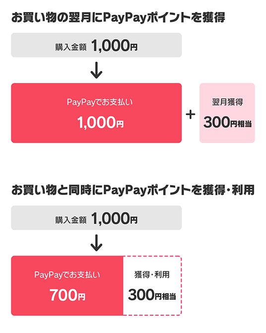 ・PayPay社によるキャンペーンや「PayPay」支払い特典で付与される「PayPayポイント」は本機能のご利用対象外ですので、従来通り獲得できます。