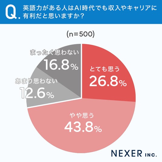 続いて、英語力がある人はAI時代でも収入やキャリアに有利だと思うかを聞いてみました。