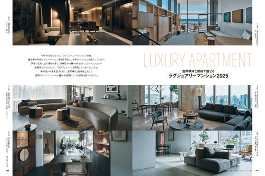 空間構成と動線で魅せる ラグジュアリーマンション2025今号で4回目となった、「ラグジュアリーマンション」特集。建築家が手掛けたリノベーション事例を中心に、6軒のマンションを紹介しています。戸建て住宅に比べ規制が多く、建築設計の豊かさを生かしにくいマンションで建築家たちはどのように「ラグジュアリー」を表現しているのでしょうか。素材使いや家具選びと共に、空間構成と動線を工夫して空間のシークエンシャルな豊かさを実現している好例を見つけました。