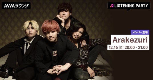 AWA株式会社(本社:東京都港区、代表取締役CEO:冨樫晃己)が運営する、サブスクリプション型(定額制)音楽ストリーミングサービス「AWA(アワ)」は、2025年12月16日(火) 20:00~21:00の1時間に渡り、無料で誰でも参加できるオンライン空間「AWAラウンジ」で、Arakezuriのメンバーが音声とチャットで参加するリスニングパーティーを開催いたします。