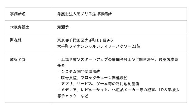 弁護士法人モノリス法律事務所 代表弁護士 河瀬季