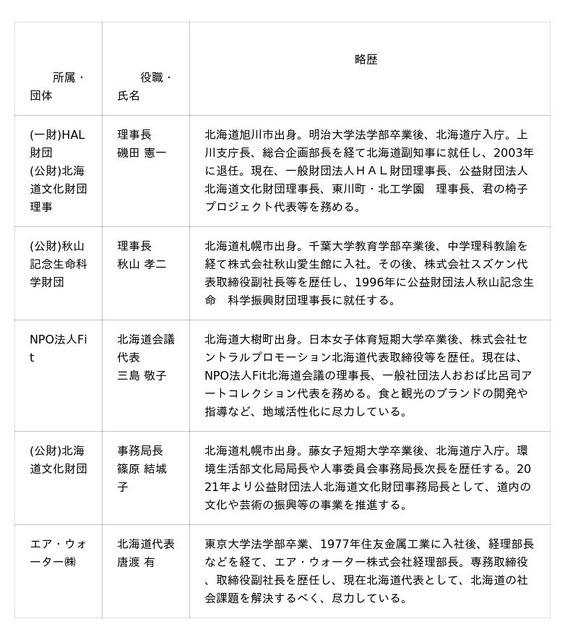 ・サポート会議:道内の若手外部有識者で構成し、一次審査として事業の目的や実現性を評価