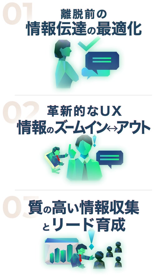 - - AIチャットを通して顧客が持つ「具体的な疑問」の深掘り精度が向上。視聴者のニーズをより正確に把握し、商談化に向けた質の高いリード育成を実現します。